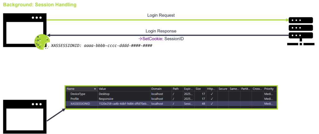 The real risk emerges once authentication is involved. When a user logs into a Mendix application, the runtime validates the credentials and creates a server-side session. This session is identified by a session ID, which is sent back to the browser and stored in a cookie.
